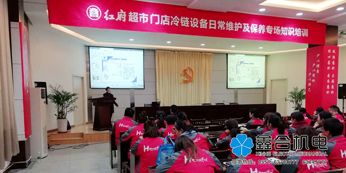 2019年3月29日,由安徽商之都紅府超市組織的《冷鏈設(shè)備日常維護(hù)及保養(yǎng)》專場培訓(xùn)會在合肥召開。安徽鑫合機(jī)電設(shè)備有限公司溫曉慧總經(jīng)理、商超事業(yè)部詹金保經(jīng)理、張鵬經(jīng)理應(yīng)邀參加此次培訓(xùn)會,并為紅府超市各門店店長及生鮮科科長進(jìn)行制冷專業(yè)知識培訓(xùn)。